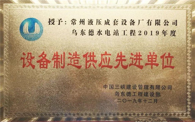 熱烈祝賀我公司在烏東德水電站工程中被授予“設(shè)備制造供應(yīng)先進(jìn)單位”的光榮稱號(hào)